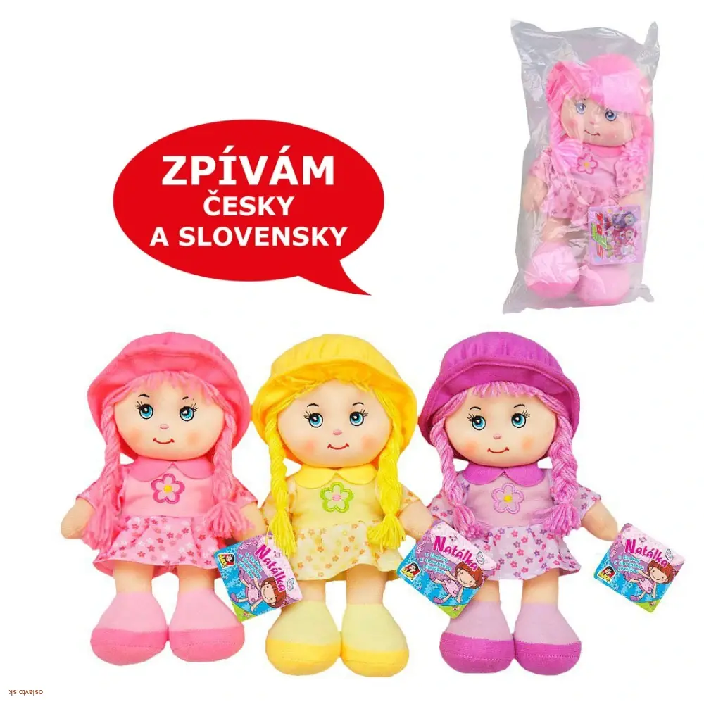Bábika textilná, spieva 3 pesničky 26cmskladom ihneď k odoslaniu 2 ks15 €/ ks12,20 € bez DPH