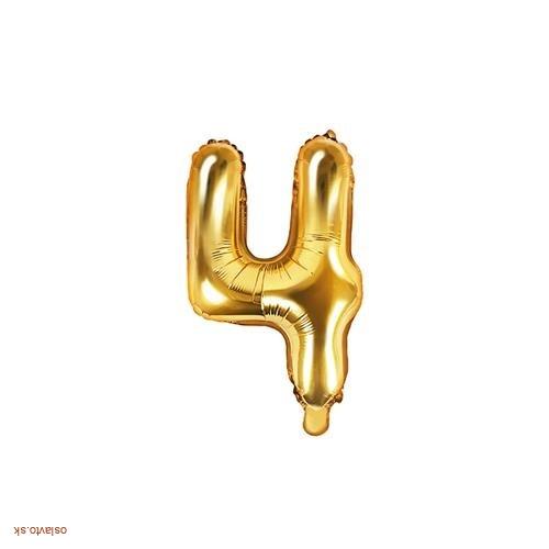 Foliová číslica 4 v zlatej farbe, balónik sa vďaka svojej veľkosti ani po nafúknutí héliom nebude vznášať. Odporúčame nafúknuť len vzduchom.