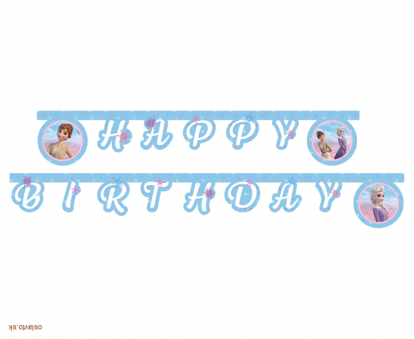 Girlanda s nápisom Happy Birthday a motívom obľúbených hrdiniek Elsy, Anny je ideálnou dekoráciou pre detskú oslavu, tematickú párty alebo narodeniny malej princeznej.