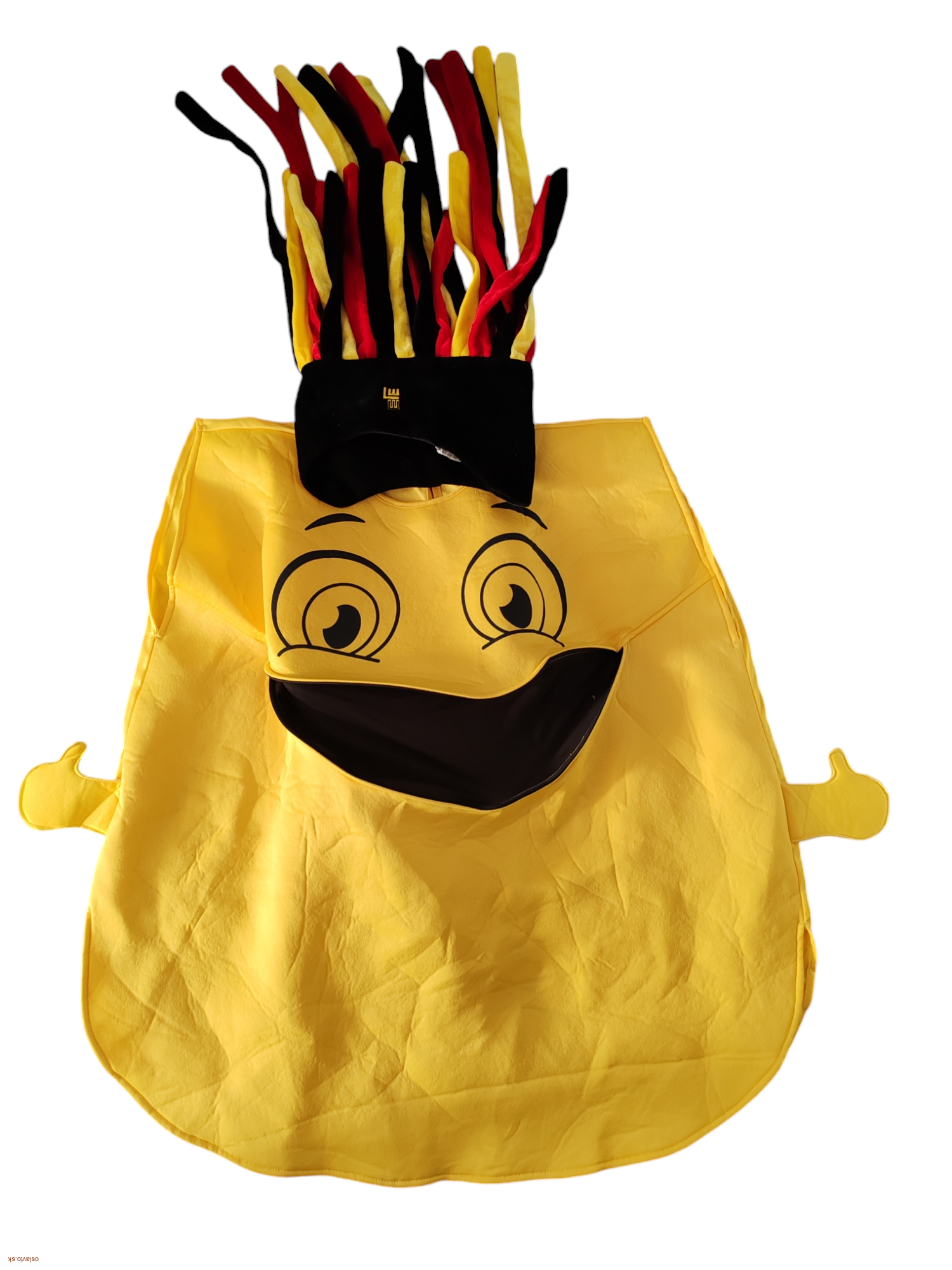 Štýlový žltý kostým maskot pre dospelých, ktorý rozveselí každú oslavu! Ideálny na karnevaly, párty či tematické detské akcie. Pohodlný strih zabezpečí príjemné nosenie, takže môžete rozdávať úsmevy celý čas! Na fotke č.2 je oblečený na figuríne veľkosti M. Veľkosť kostýmu použiteľná po veľkosť XL.