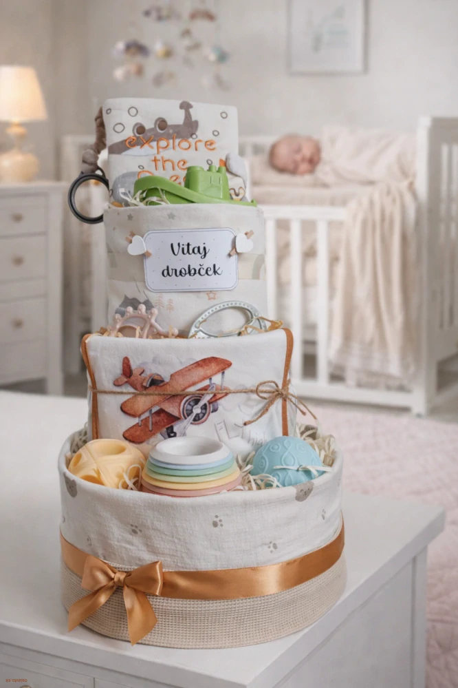 Farebné prevedenie v jemných neutrálnych a chlapčenských tónoch pôsobí moderne a zároveň nadčasovo. Tortu nie je potrebné ďalej baliť – je pripravená na okamžité darovanie. Každý kus je ručne aranžovaný s dôrazom na detail a estetiku, aby darček vytvoril skutočný „wau efekt“.