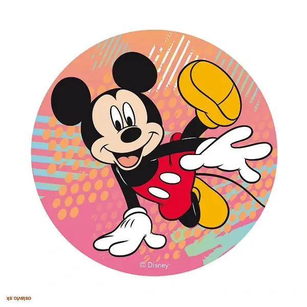 Rozveseľte každú detskú tortu jedlým obrázkom Mickey Mouse 20 cm. Vyrobený z jedlého papiera (0,5 – 0,7 mm) a zdravotne nezávadných potravinárskych farieb a bez lepku.