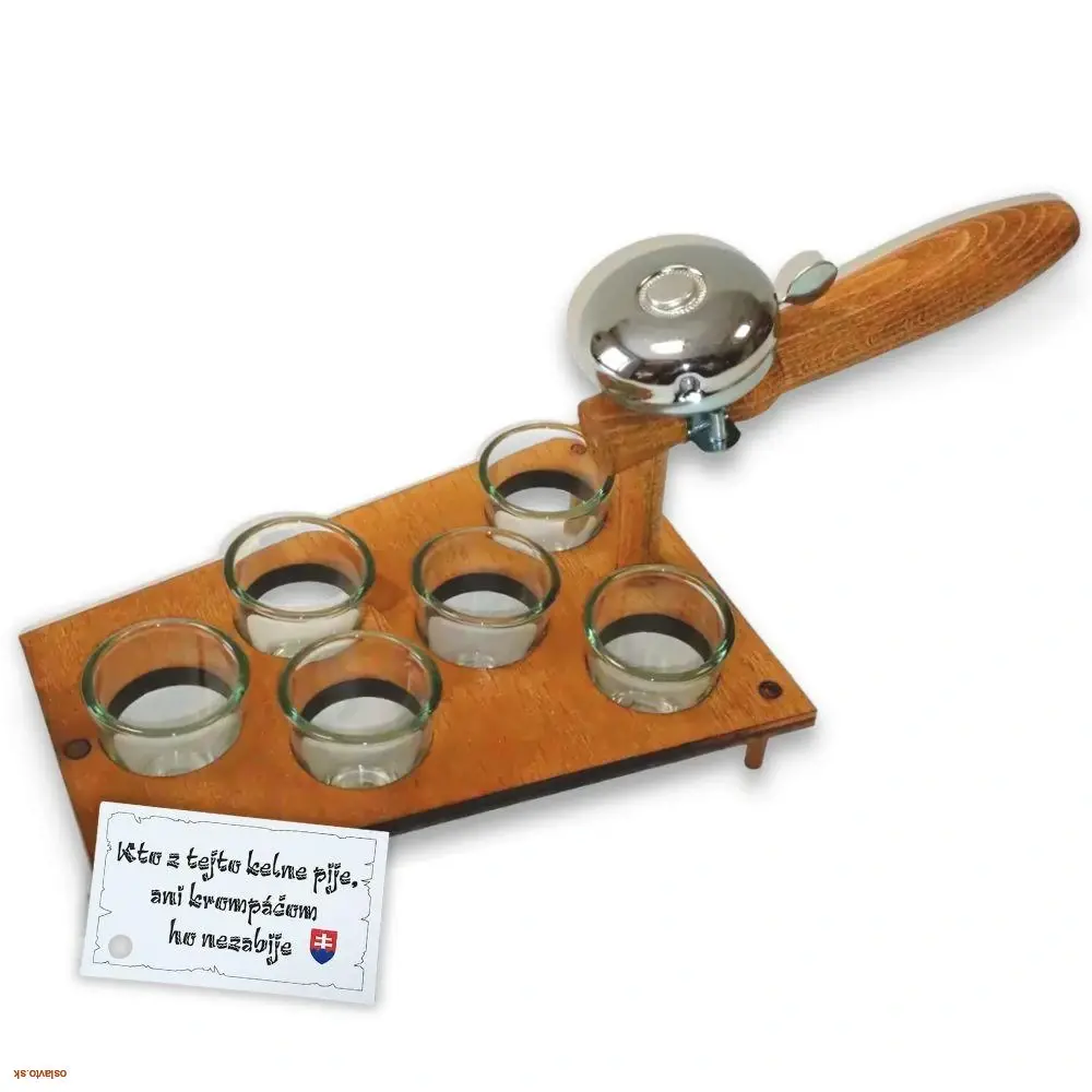 HUMORNÝ DARČEK DREVENÁ KELŇA / 6 POHÁRIKOV A ZVONČEK