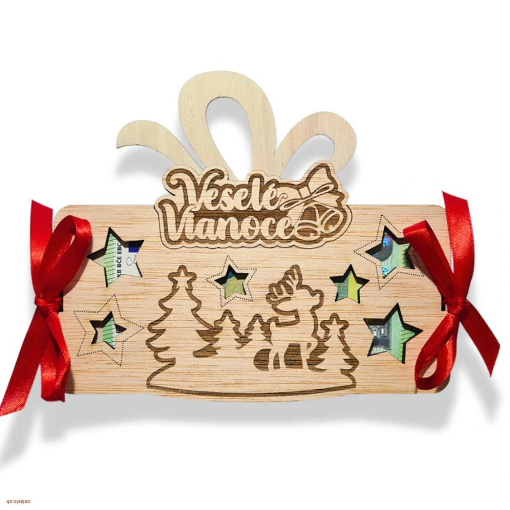 Drevená darčeková obálka na peniaze – Veselé Vianoce – originálny vianočný darčekskladom ihneď k odoslaniu 1 ks9,50 €/ ks7,72 € bez DPH
