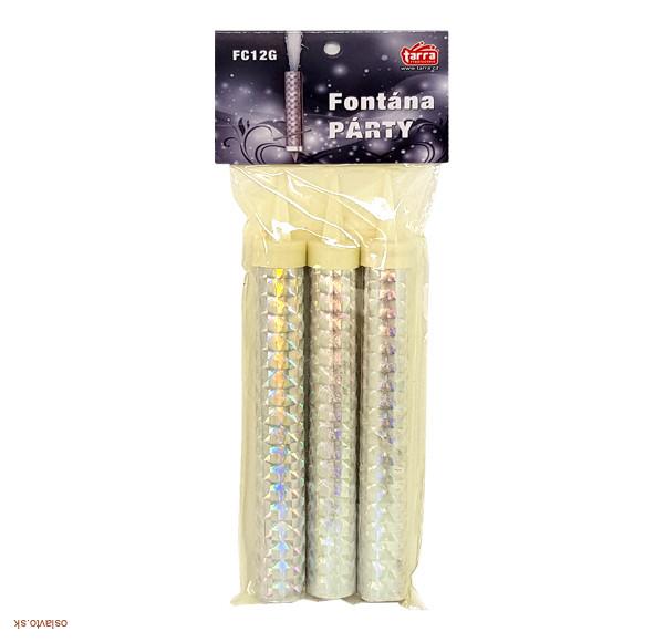 Žiadna párty sa nezaobíde bez týchto párty fontán! Jedno balenie obsahuje 3 kusy farebnej párty fontány s dĺžkou 12 cm s efektom zlatých hviezdičiek. Dĺžka trvania horenia je 40 sek. Balenie je po 3 kusoch a je určená len pre vonkajšie využitie. Cena je za balenie. Rozmer: 8 x 12 cm