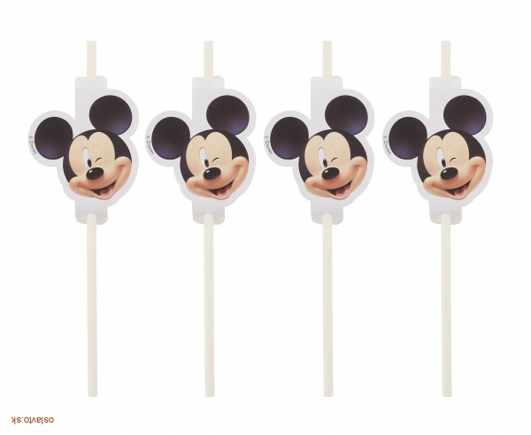 Party papierová slamky so zdobením - Mickey Mouse - 4 ks.