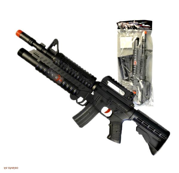 Tento samopal na batérie so zvukom streľby poteší každého malého vojaka. Po stlačení kohútika samopal vydáva realistický zvuk streľby, v hlavni sa rozsvieti farebné svetlo a v spodnej časti hlavne sa rozvíria drobné guľôčky s farebným prerušovaným svetlom, pričom sa celá časť chveje. Tento efekt zaručí maximálne realistickú hru.