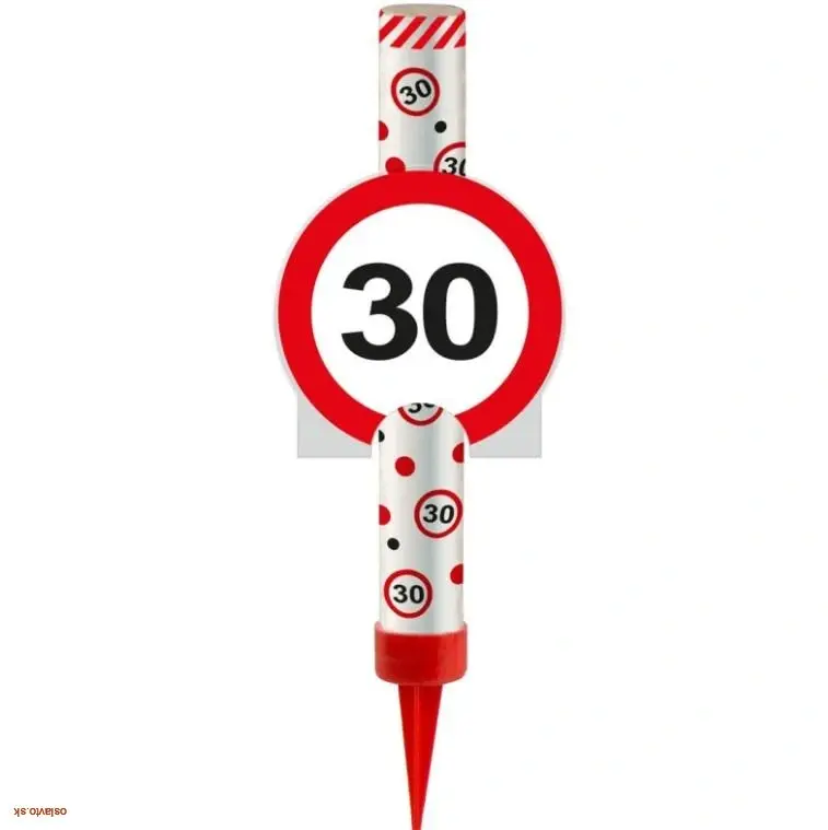 Doprajte svojej oslave poriadnu dávku efektu a prekvapenia s tortovou párty fontánou! Táto iskrivá dekorácia dodá každej torte ten správny wow moment – stačí zapáliť a sledovať, ako sa rozžiari. Táto fontána je špeciálna svojim originálnym dizajnom v tvare dopravnej značky k 30-tym narodeninám.