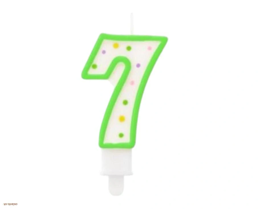 Tortová sviečka číslo 7 – zelená s bodkamiskladom ihneď k odoslaniu 1 ks1,60 €/ ks1,30 € bez DPH