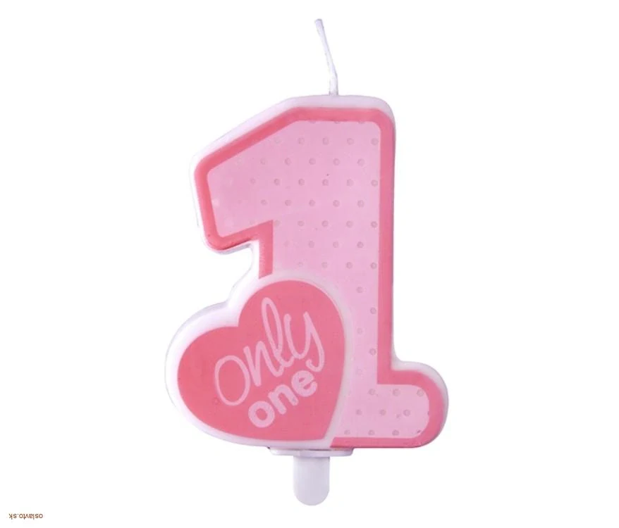 Táto narodeninová sviečka v tvare čísla 1 je navrhnutá tak, aby bola dominantným prvkom torty bez potreby ďalších dekorácií. Jemný ružový povrch s ružovým srdiečkom s nápisom "ONLY ONE" pôsobí moderne, čisto a elegantne.