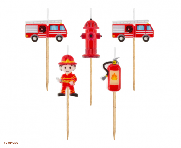 🚒 Pripravte malému hrdinovi tú najlepšiu oslavu s týmito originálnymi sviečkami na tortu s témou hasiči! V balení nájdete 5 ks sviečok v rôznych tvaroch – hasičské auto, hydrant, prilba, výstražná značka a iné ikonické motívy.