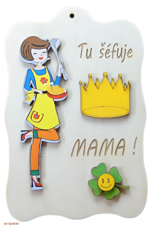 Vtipná drevená tabuľka "Tu šéfuje mama".